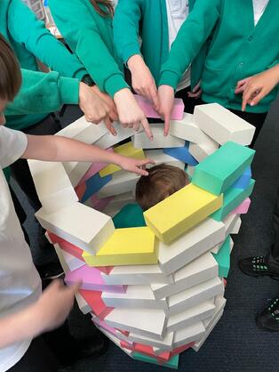 Students will then be divided into smaller groups of 5-6 and participate in practical activities using foam bricks, including building towers, walls, and structures of their own design. Smaller classroom based activities include shape building activities, exploring 2D and 3D shapes and dimensions.